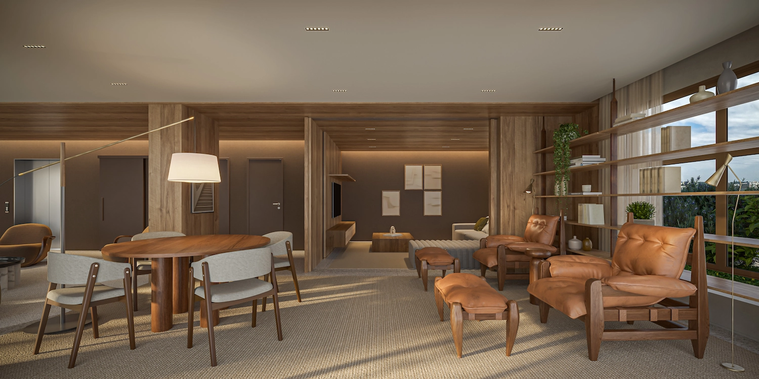 O projeto de interiores da Suite Arquitetos reforça essa proposta. Com um design contemporâneo e acolhedor, as áreas comuns foram