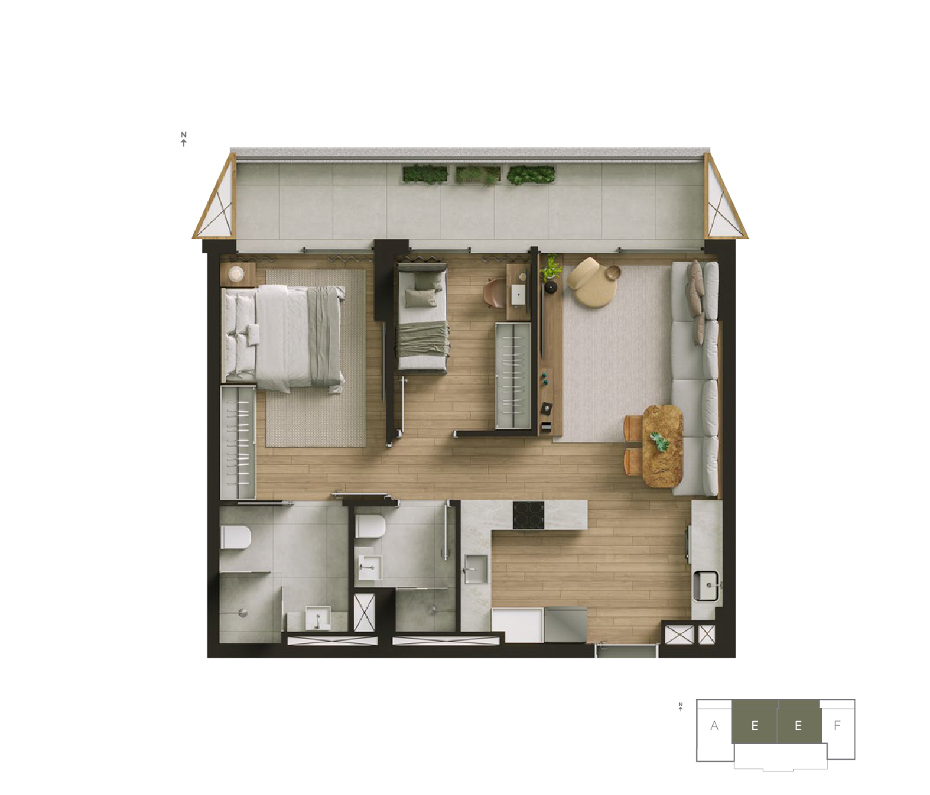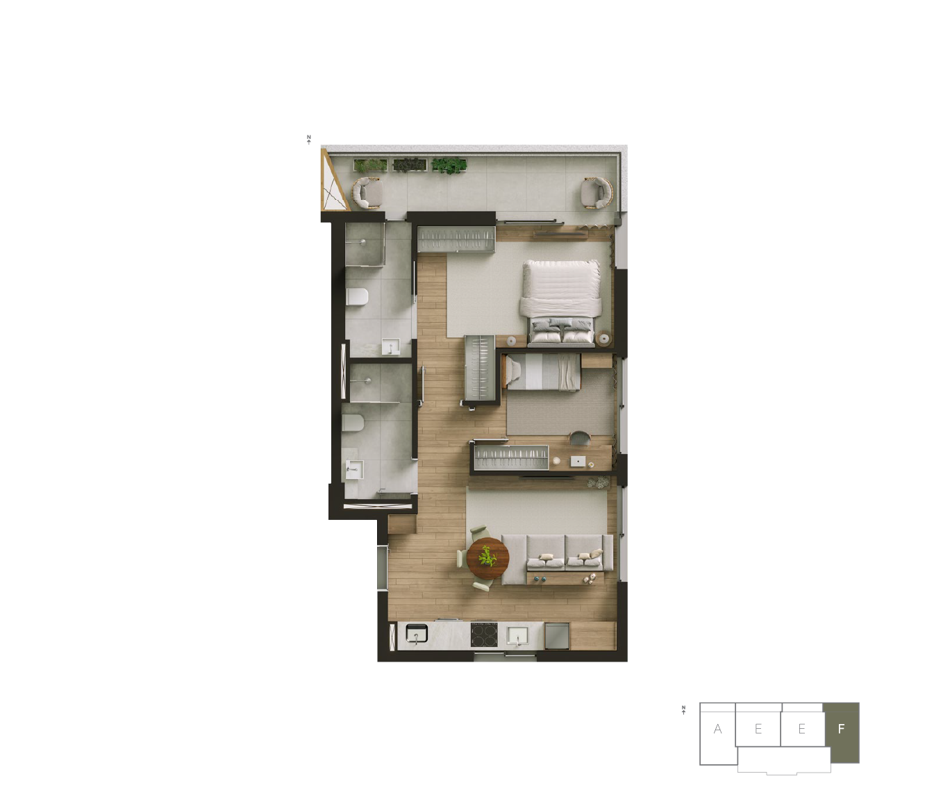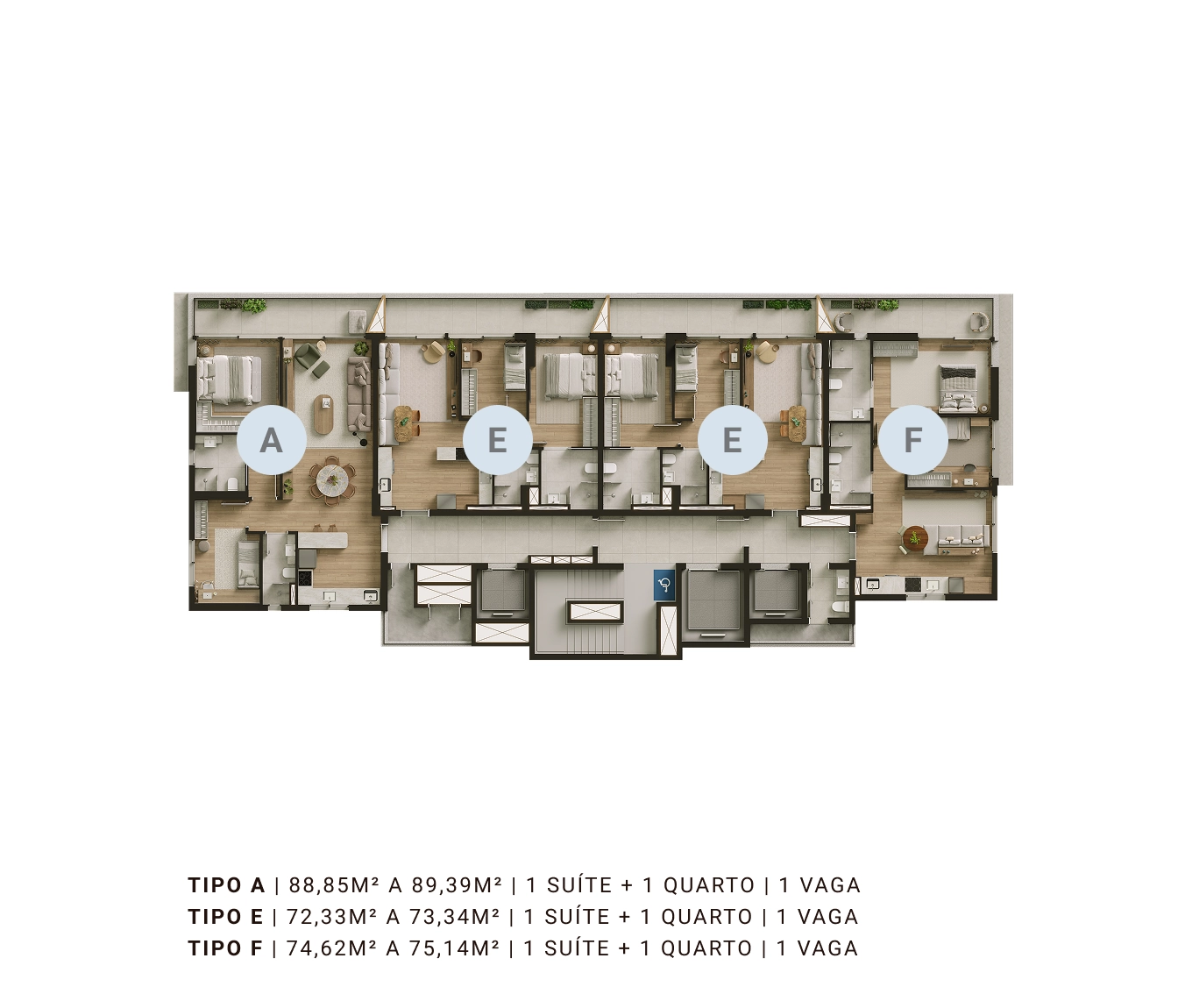| 1 SUÍTE + 1 QUARTO | 1 VAGA