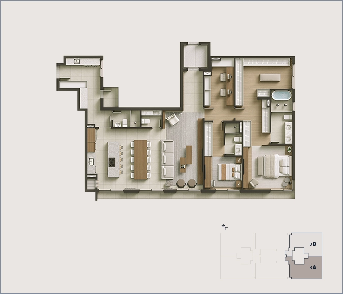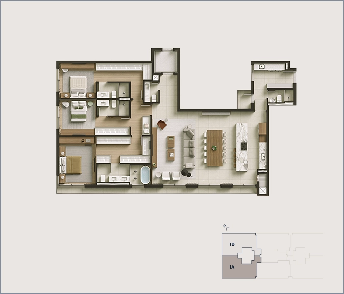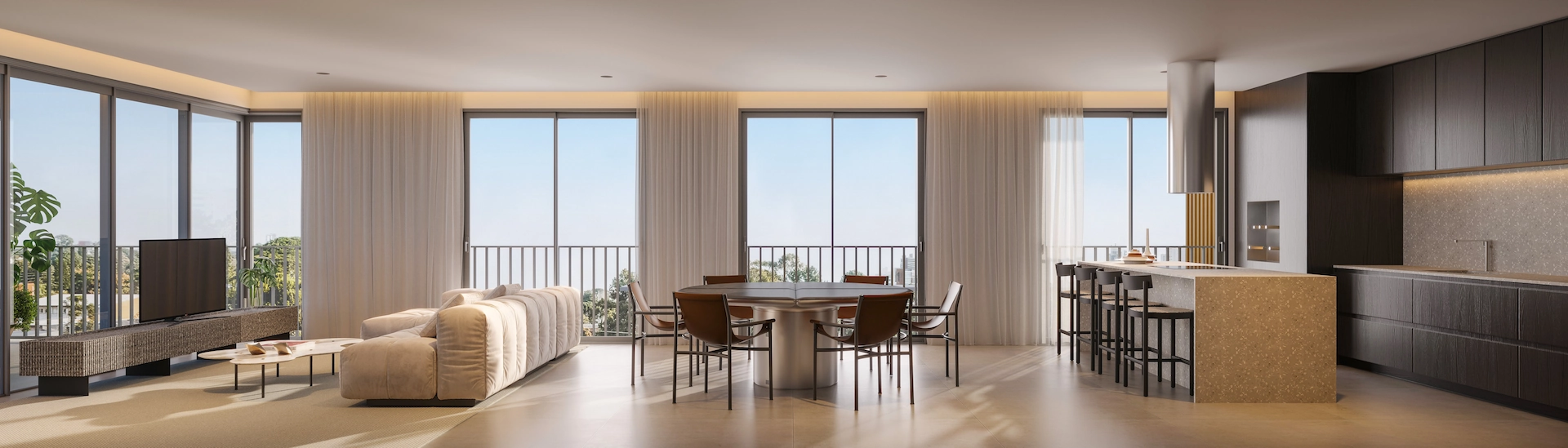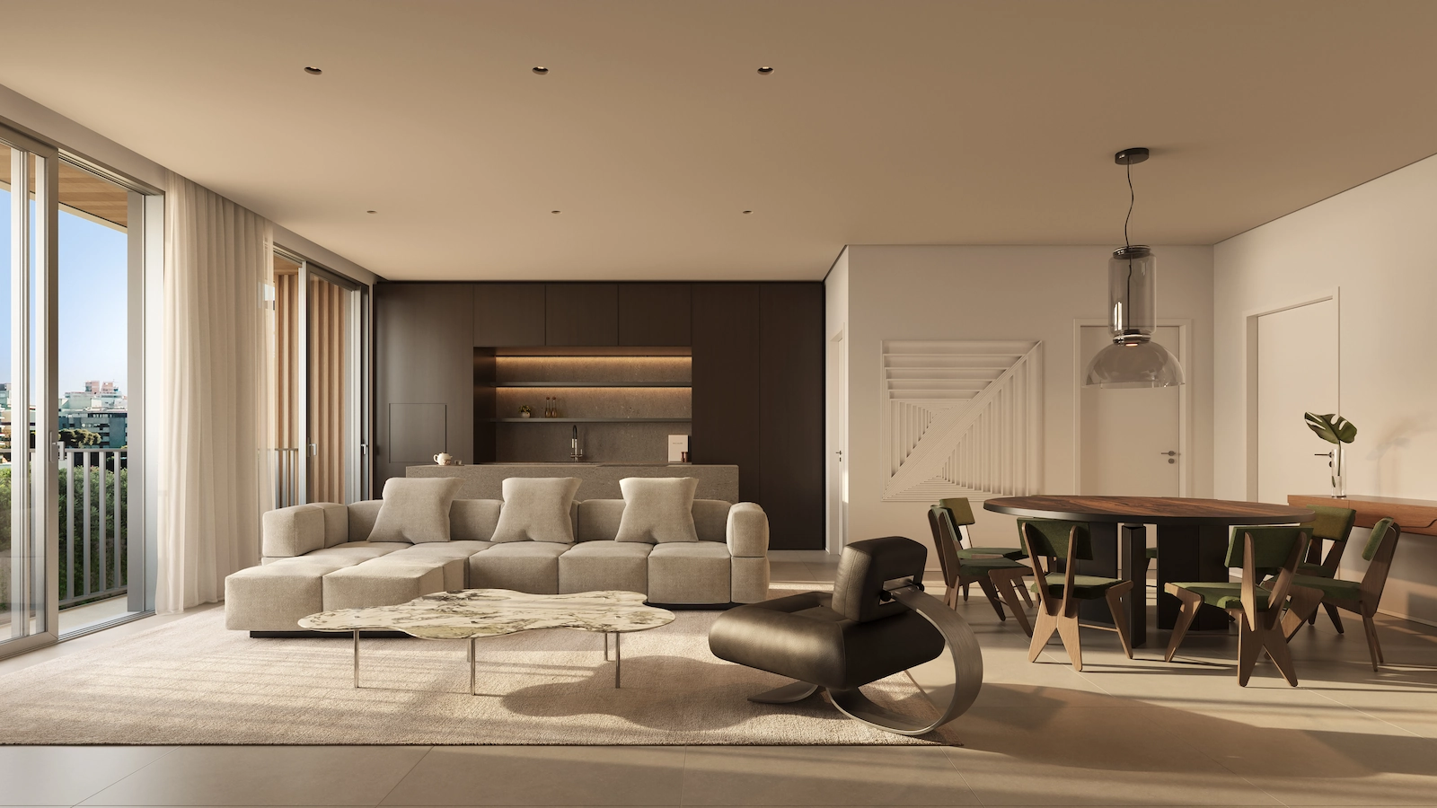 “O projeto de interiores dos apartamentos do JOÁ foi pensado para criar espaços atemporais, que acompanham o ritmo da vida contemporânea