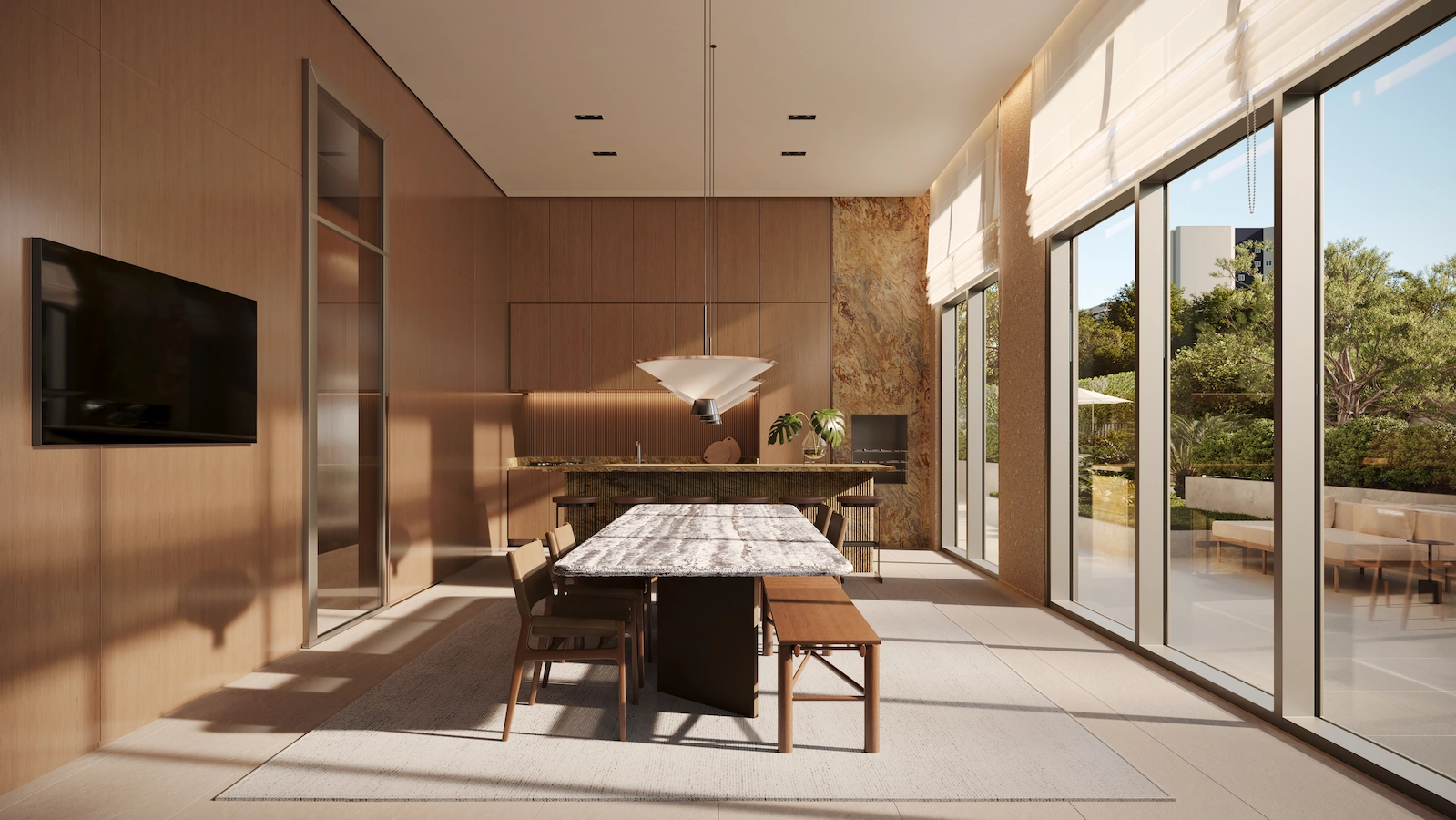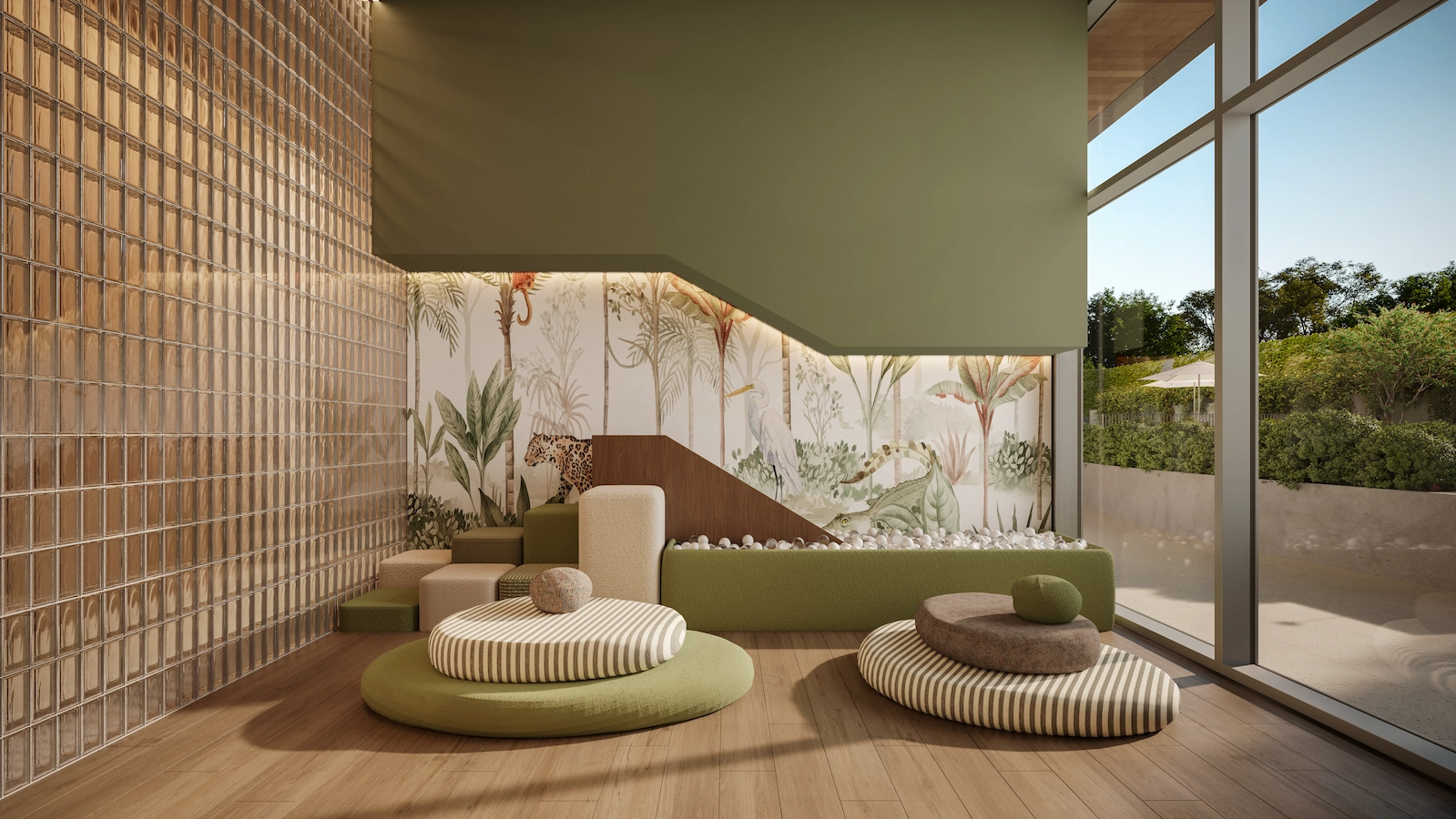 "Nós proporcionamos áreas comuns que se identificam com os moradores de diversas faixas etárias. Temos áreas para as crianças, casais, famílias e para os moradores receberem suas visitas, além de espaços pensados para a saúde e o bem-estar. E tudo isso de forma muito fluida e natural, com espaços interligados não apenas através da circulação, mas também pela escolha dos materiais."