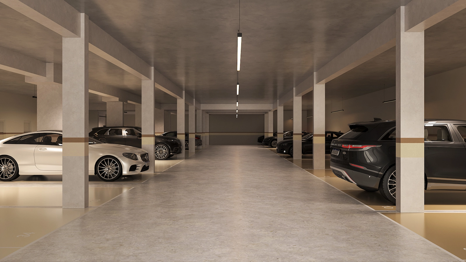 Monitoramento em tempo real de CO e partículas voláteis, com renovação automática de ar nas garagens e áreas comuns.