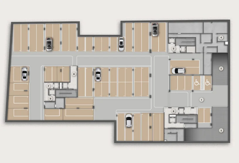1 vaga box por residência, com capacidade para 1 ou 2 veículos*