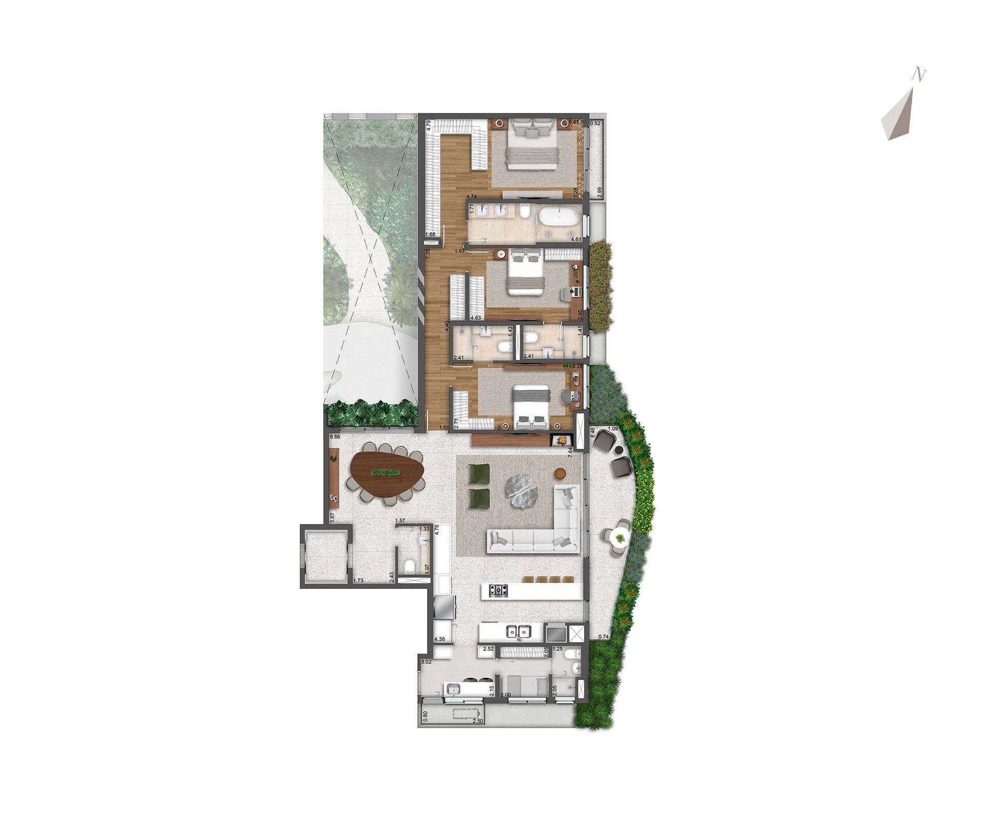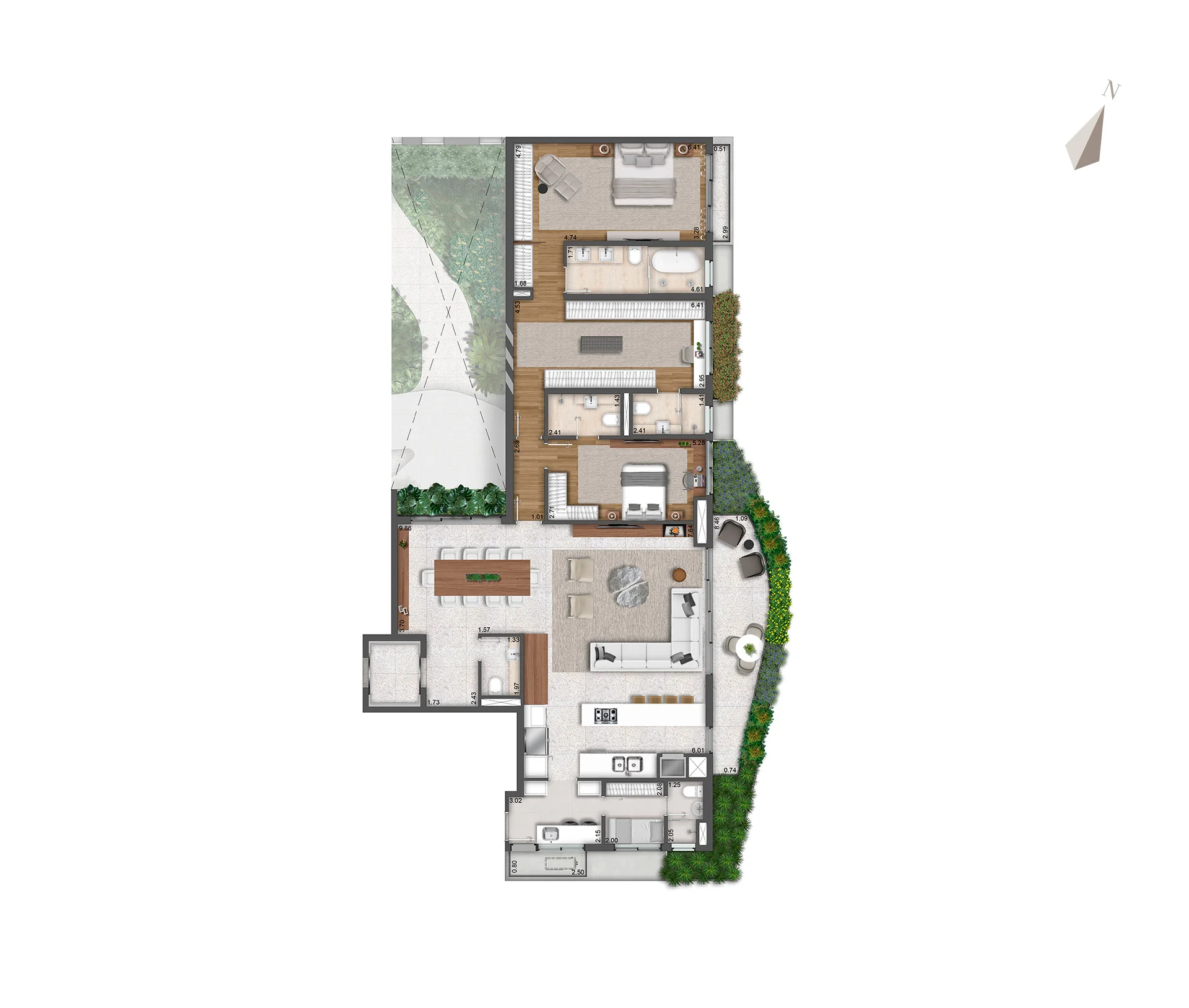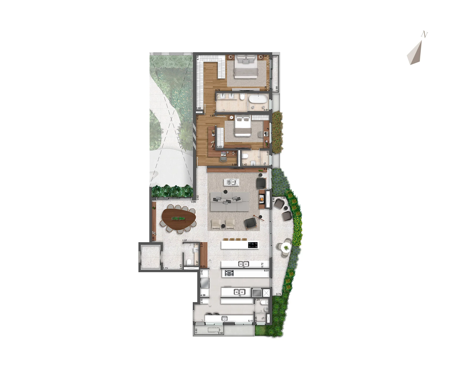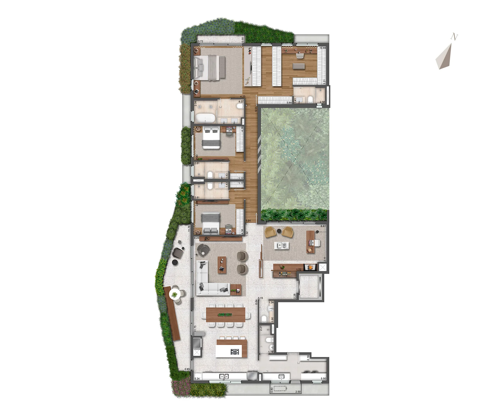 No átrio, onde a sintonia entre luz e sombra encanta, relembramos o berço da arquitetura e criamos uma ponte para o presente.